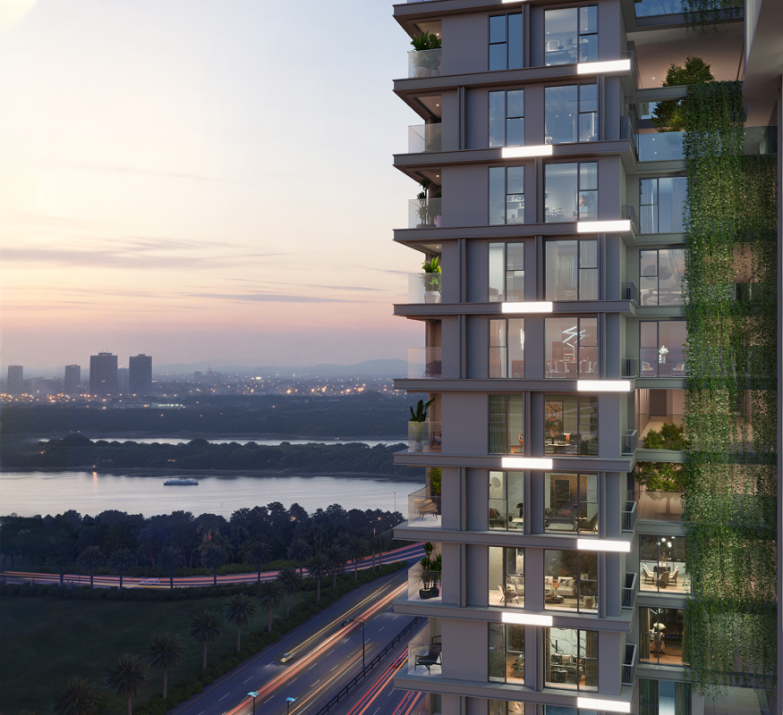 Lấy cảm hứng từ nhịp điệu Hồ Tây, kiến trúc mở ra mặt nước rộng và bầu trời chuyển sắc qua hệ kính hai lớp, tối ưu tầm nhìn sông – hồ – thành phố.